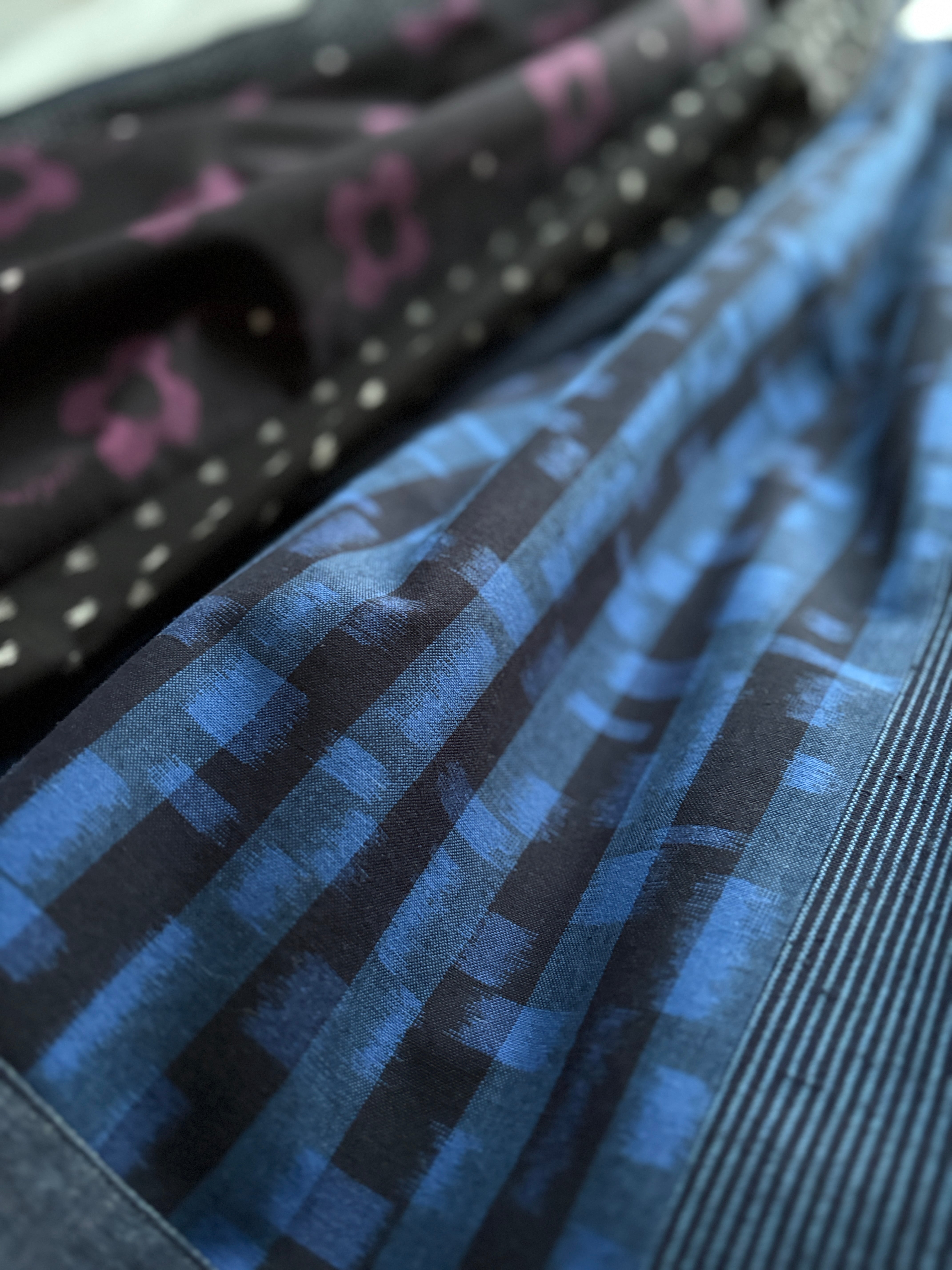 キラキラとした水面のような、眺めているだけで気持ちが澄んでいくような美しい久留米絣。
