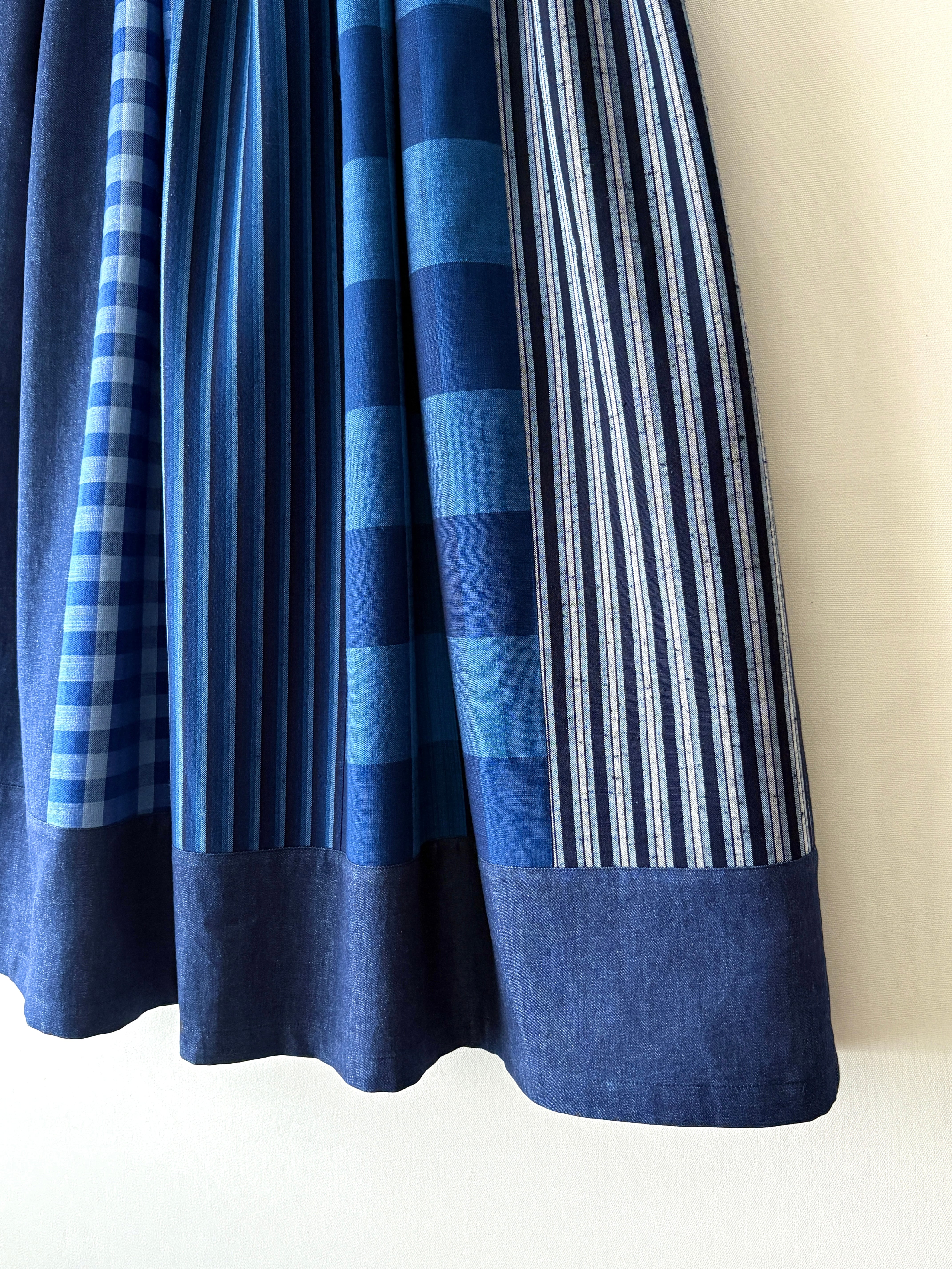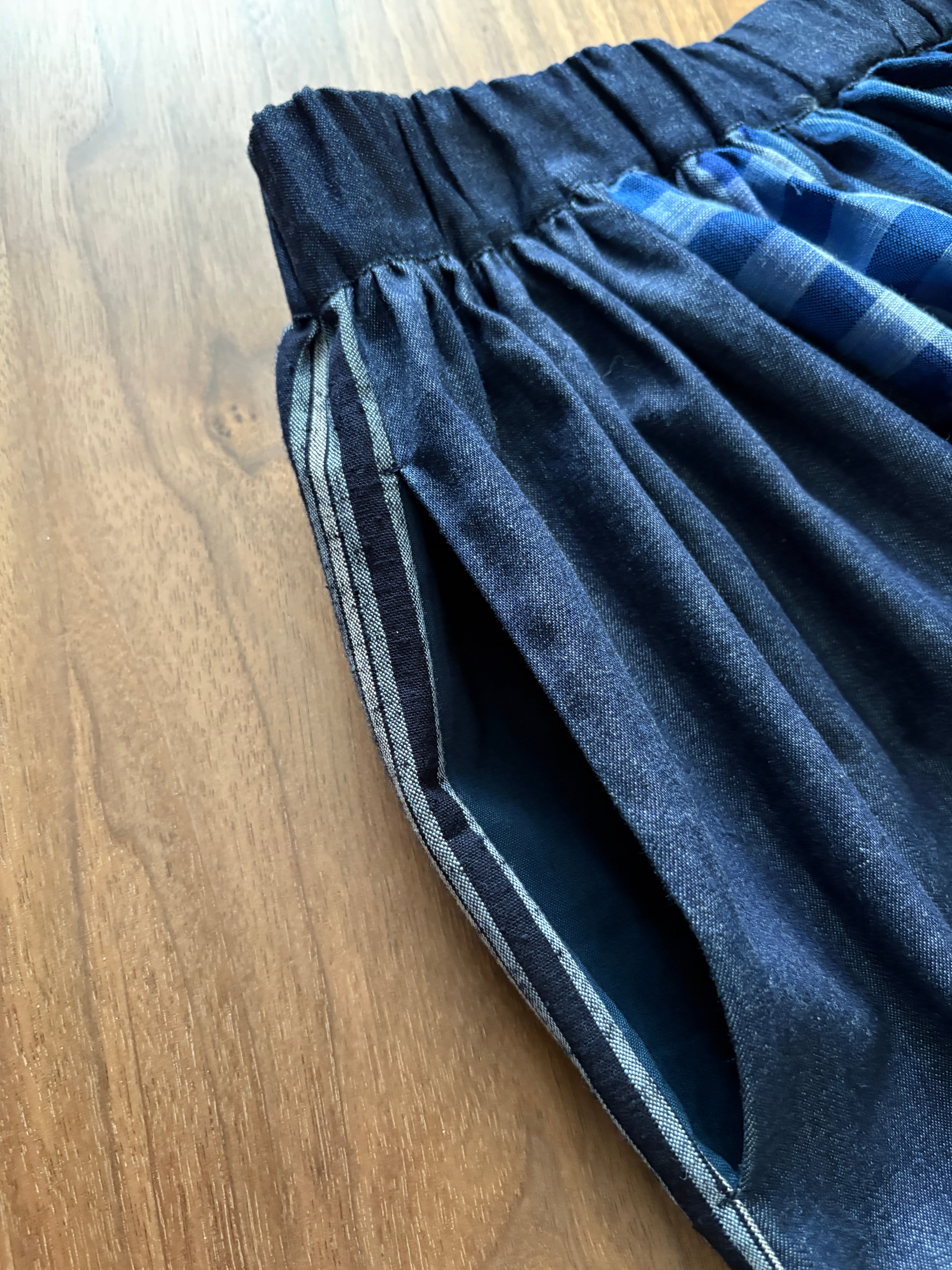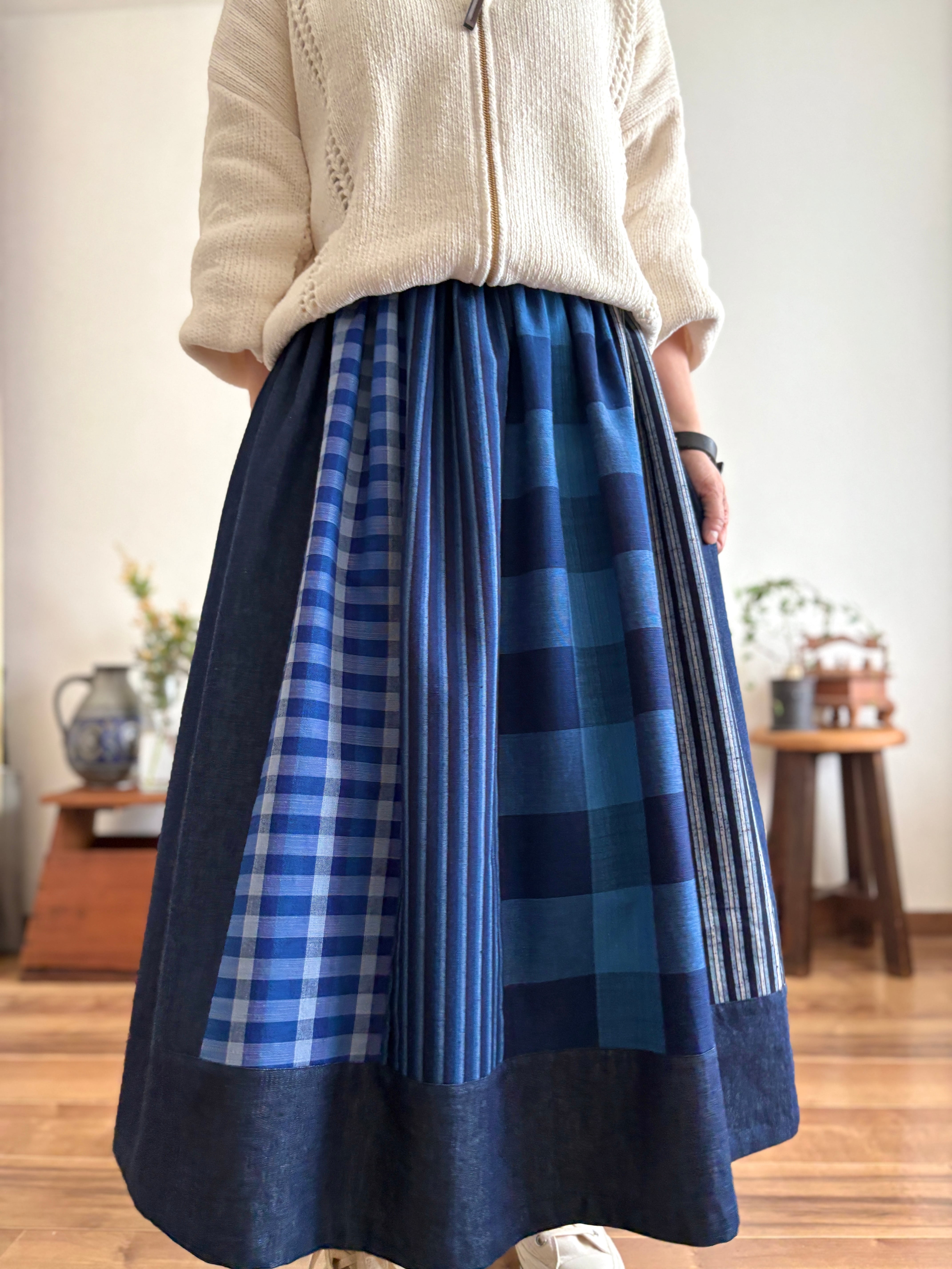 〈絣スカート〉藍のチェックonチェック