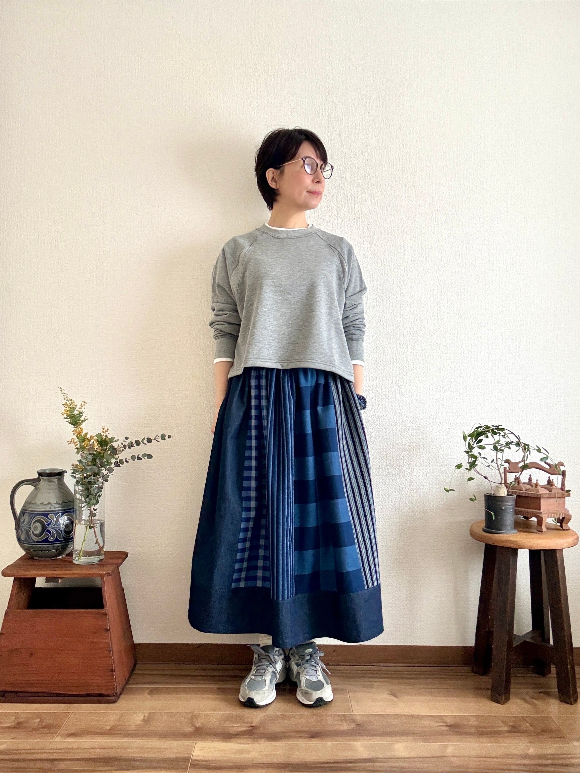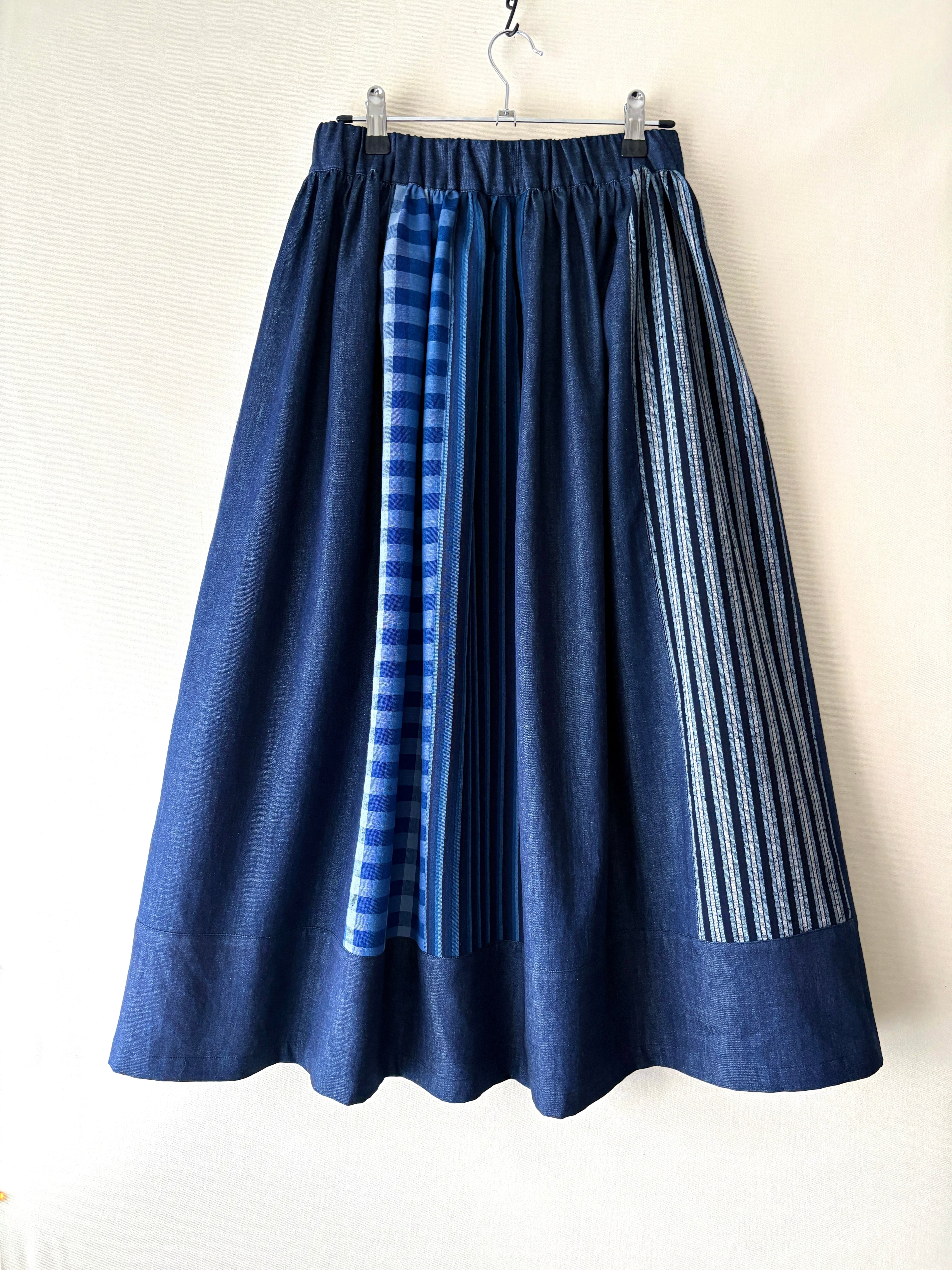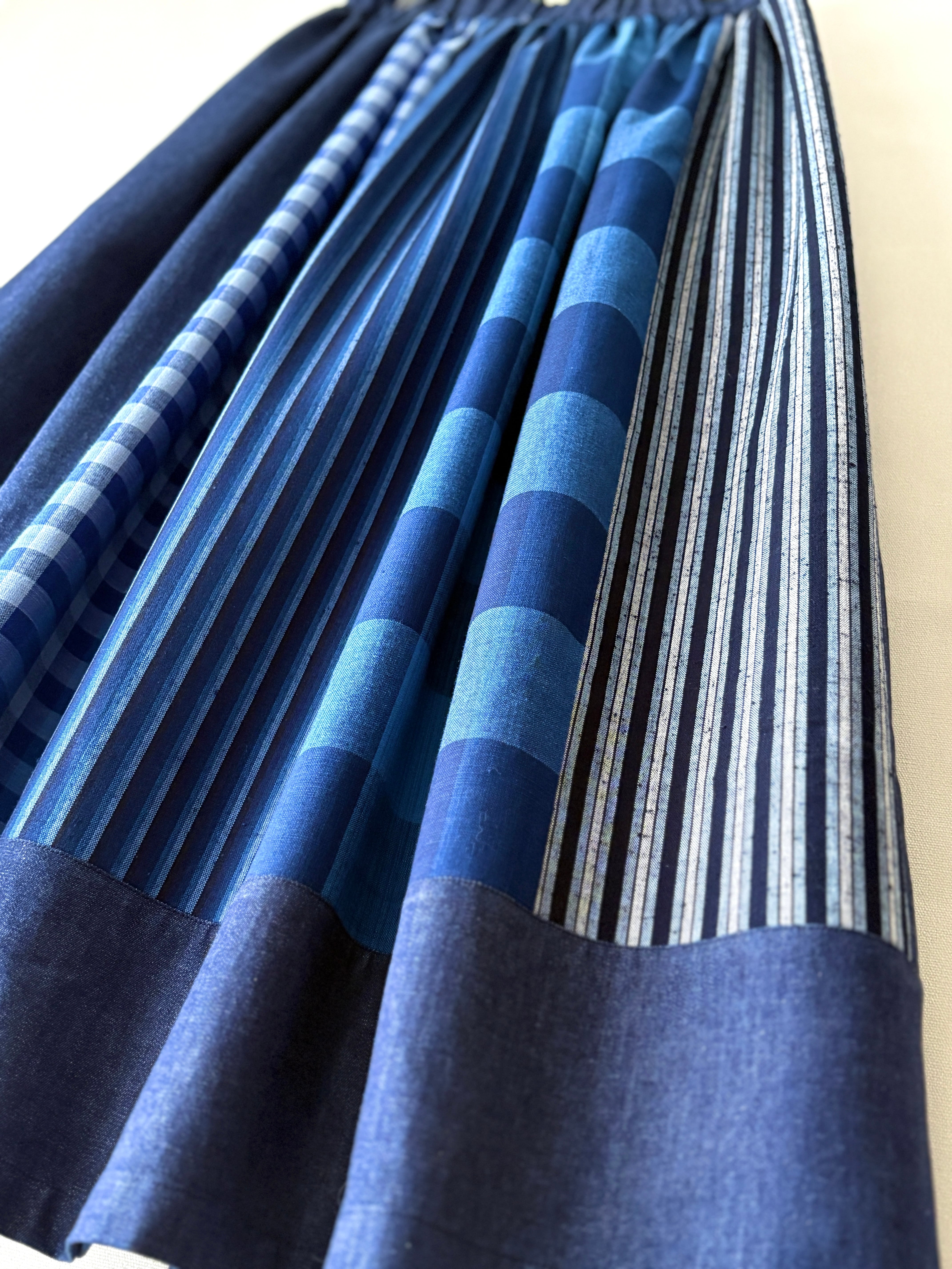 〈絣スカート〉藍のチェックonチェック